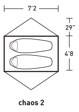 The Alps Mountaineering Chaos 2 is a one continuous pole design. It’s a free standing tent that is enhanced with 2 doors for easy entry and 2 vestibules for gear storage and extra weather protection. Extra large #8 zippers make opening and closing the doors and vestibules a breeze. The Chaos has 7000 series aluminum poles that are strong and lightweight. Assembly is really easy with the tent clips that just snap in place over the poles. The poles are all shock corded together as one continuous system. With a factory sealed fly and floor seams, you’re sure to stay dry in rainy weather. The polyester fly and floor are urethane coated, factory sealed seams for maximum weather-proofness. The fly buckles to the tent, offering a much more secure attachment when compared to elastic cord. The mesh roof vents increase ventilation and improves star gazing. All these combined features, make the Chaos a great choice for any backpacking trip.