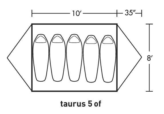 The Alps Mountaineering Taurus Outfitter 5 is a simple 2-pole freestanding dome tent that is enhanced with 2 doors and 2 vestibules (one over each door) with extra large #8 zippers to make entering and exiting the tent hassle free. The two doors each have a mesh window, which is great for ventilation… and when it’s time to put on the fly, you won’t have to worry about losing your fresh air. The fly has additional vents for continued ventilation. Our tents each come with a factory sealed fly and floor seams to give you the best weather protection and keep you dry.