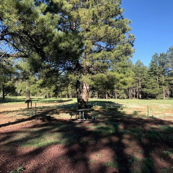 - The sites come with a picnic table and a fire ring, and have a cinder gravel base.