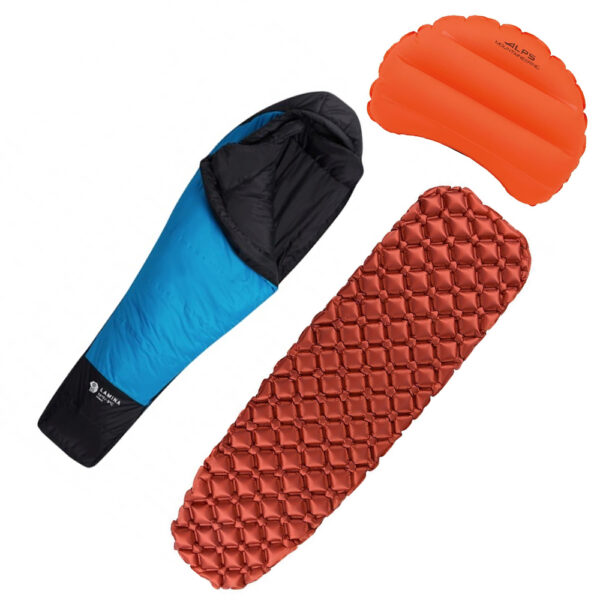 Sleeping bags: Mountain Hardwear Lamina 30 or similar / Air mattress: Stoic Clutch or similar / Pillow: ALPS Mountaineering Apollo Inflatable or similar