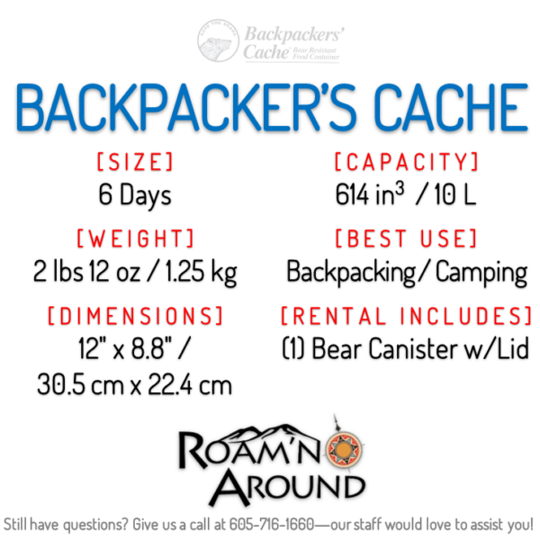 SKU: RENTAL:BEARCAN:18-01, RENTAL:BEARCAN:18-02-1 Categories: Bear Canisters, Camping Tags: #camping, backpacker's cache, backpacking, bear canister, bear vault, Black Hills, Rapid City, SD, South Dakota