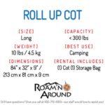 Versatile and compact, this cot is easy to pull out and sets up in only minutes. Easily rolls up into a carry bag for convenient transport and storage.