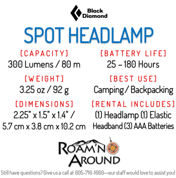 SKU: RENTAL:HEADLAMP:18-01, RENTAL:HEADLAMP:18-02 Categories: Backpacking, Camping, Camping Lights Tags: #camping, backpacking, Badlands, Black Diamond, Black Hills, headlamp, Lighting, Rapid City, SD, South Dakota