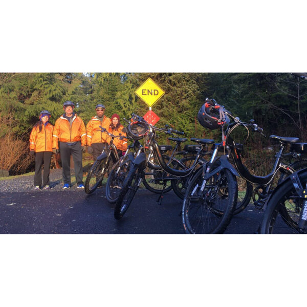 Ketchikan Kayak Co. is excited to offer the first and only e-bike tour in SE Alaska. Join us for an easy and enjoyable electric-assist bicycle ride on the road to nowhere, the end of our paved road system. This road dead ends at the edge of extensive wilderness, where you will then take a guided hike on an enjoyable trail though dense rainforest, along a stream with waterfalls, rapids and calm sections. We take a break at the stream’s edge, which just may be the quietest and most relaxing place on your whole vacation. You will then return hike to the waiting e-bikes, and on the return bicycle ride we’ll make another stop along the Inside Passage shoreline to check out the sea and beach comb a little bit on the rocky shore. Smoked salmon, picnic tables, and a great view are waiting as we return to our scenic oceanfront facilities. A convenience store with craft beers is on site.