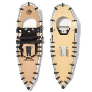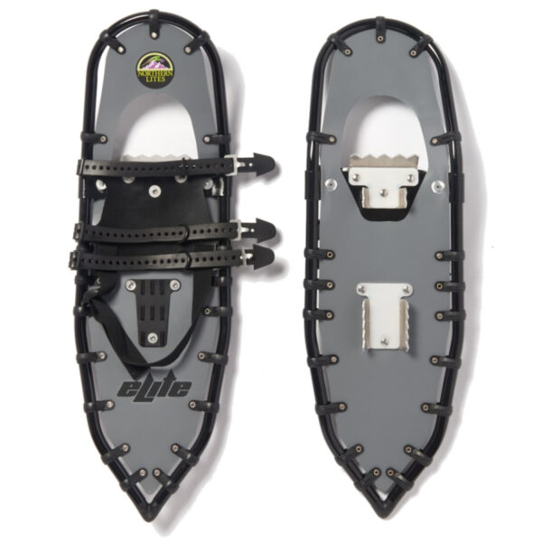 Northern Lites Elite 25 inch snowshoes with grey decking on a black frame and Speed Bindings.