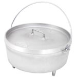 For all the cowboys and river rats who still like to cook over an open fire, this sturdy Dutch Oven is just the ticket. Made from durable, highly conductive cast aluminum, it heats up quickly and evenly and won’t rust, so it can go places where cast iron can’t. (Plus, it weighs a lot less.) Dutch-oven cooking opens up a whole new world of backcountry culinary options, from eggs and biscuits to beef stew and home-baked bread. Dutch ovens cook with radiant heat, so they work best with charcoal or coals underneath as well as heaped on the lid. (They cook beautifully in your oven at home, too.) The lid has a lipped edge to hold coals in a ring. Traditional seasoning is required, but once that’s done, food won’t stick and the pot cleans up beautifully after you’re done. This 10″ GSI Outdoors Dutch cooks for four to ten people. Comes with a Dutch Oven Lid Lifter to keep your hands safe!