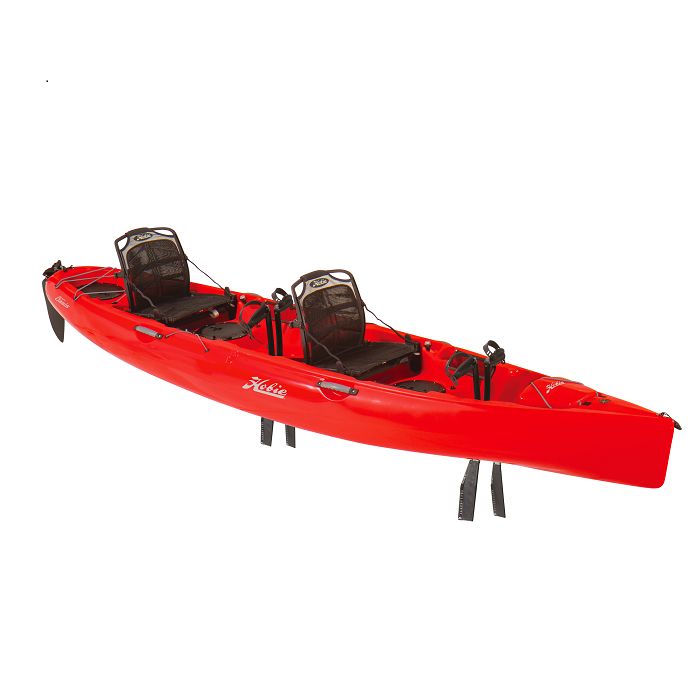 The Oasis is stretched-out and spacious, the more performance-oriented of Hobie’s pair of tandems powered by the elegant, easy-to-use MirageDrive. So speedy yet boasting a robust carrying capacity suitable for a weekend camping trip or fishing with enough gear to stock a tackle shop—there are four convenient hatches and a generous on-deck storage area, as well as molded-in rod holders. The Oasis gets the job done in style and comfort.