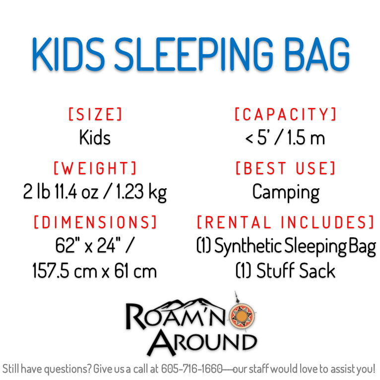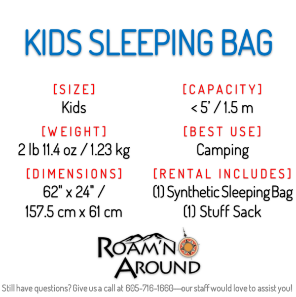 SKU: RENTAL:BAG:18-05 Categories: Camping, Sleeping Bags Tags: #camping, Badlands, Black Hills, kids, Rapid City, SD, sleeping bag, South Dakota