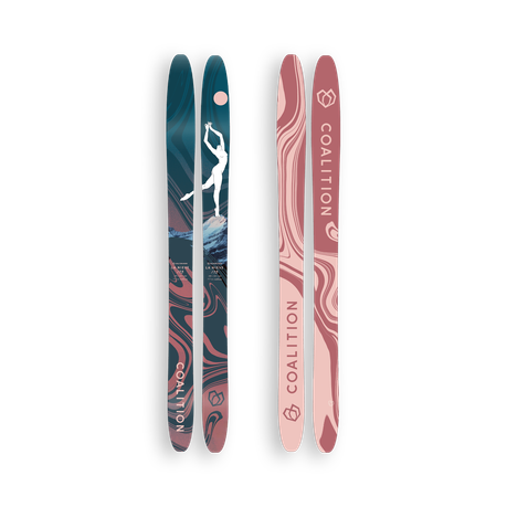 Mounted with Alpine bindings. Alpine Touring (AT) boots not required.