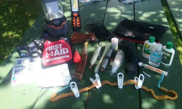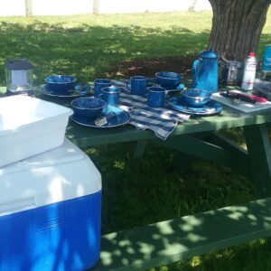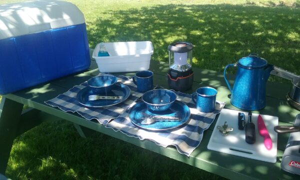 Dish basin, dish soap, sponge /garbage bag/paper towels/pot holders/lighter