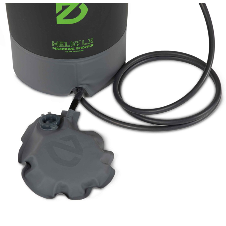 Unlike gravity camp showers that need to be hung overhead and produce dismal water pressure, Helio™ LX rests securely on the ground and delivers the pressure you need to wash hair, do the dishes, rinse off gear, water your plants, or wash the dog.