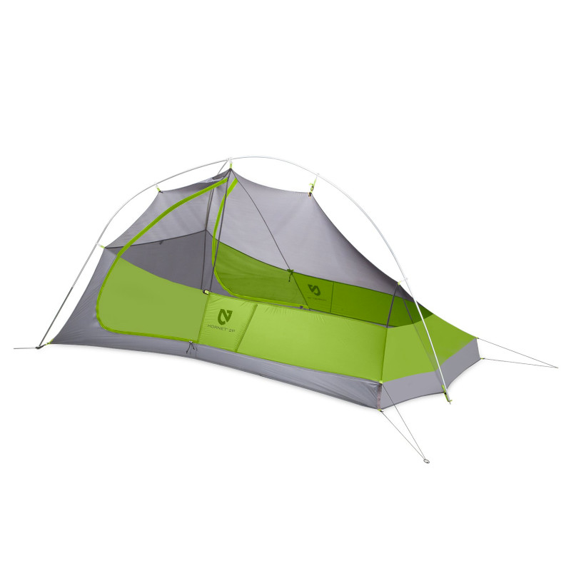 The NEMO Hornet 2P Tent is a shelter for the backcountry. Hike through the day and when it’s time to set up camp the 2 person tent is ready to protect against bugs and shield from wind and rain. The white mesh offers privacy while the black mesh allows for stargazing at night. A door and vestibule for each person won’t cramp your own personal style, enter and exit without bothering your partner.