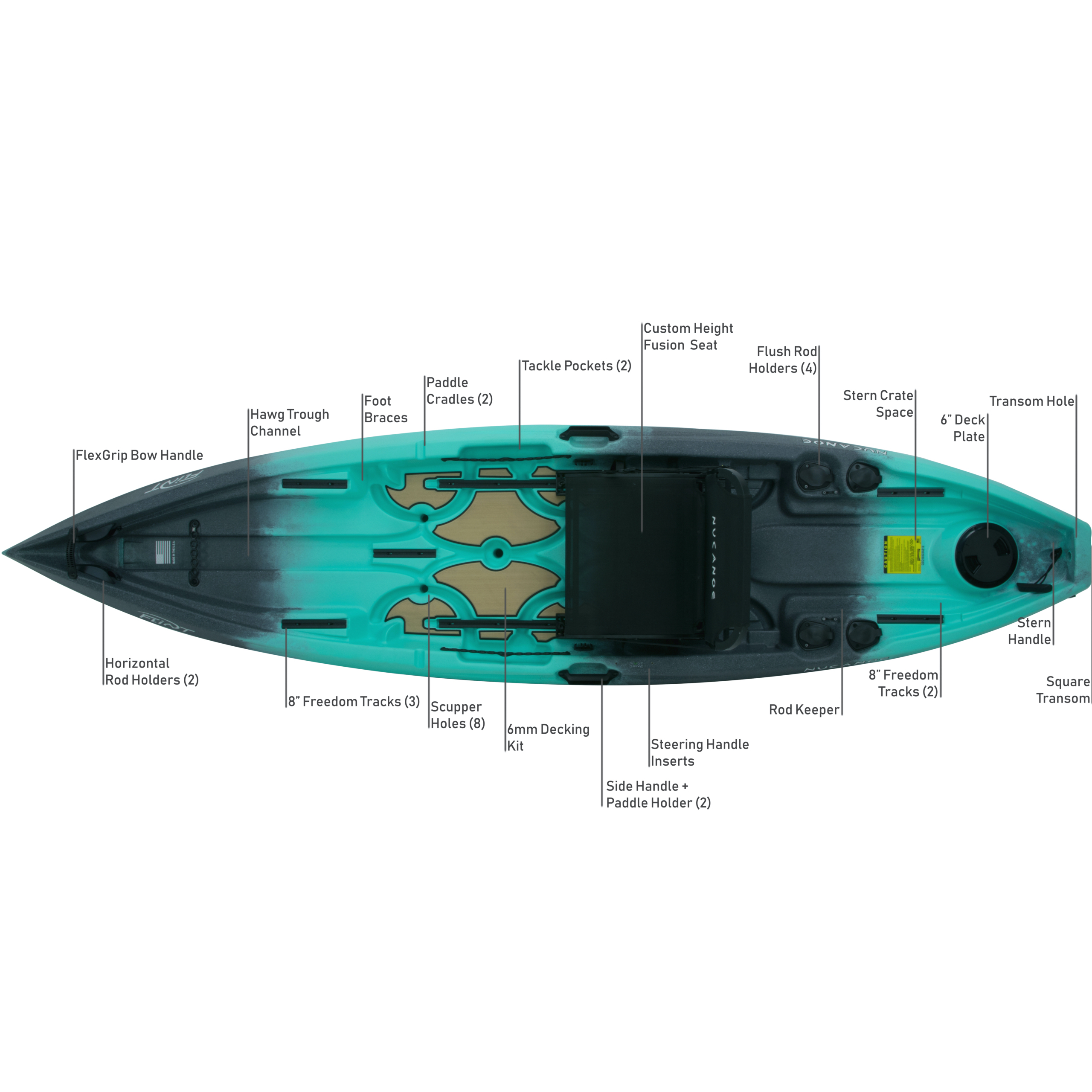 The Flint delivers high-end performance and high-end features at a mid-range price. It was designed from the hull up for optimal performance in all water types – balancing speed, stability, tracking, and maneuverability. The Flint integrates the features anglers need – rod storage, tackle storage, gear mounting, paddle holders, etc – while preserving plenty of deck space so nothing is in your way.
