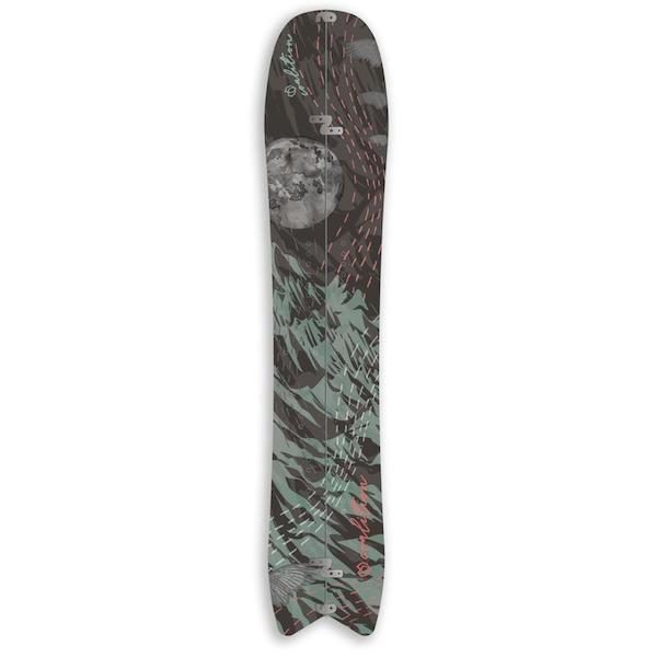 A progressive shaped women’s splitboard that light on the way up and reliable on the way down