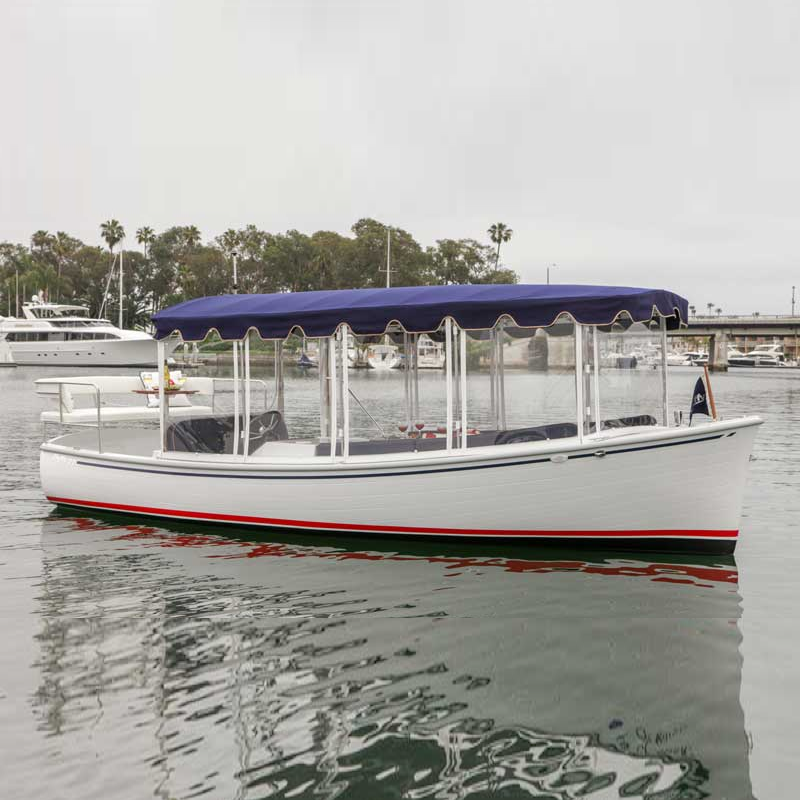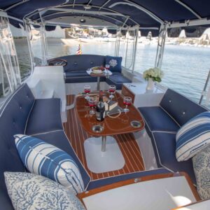 Duffy of San Diego is your go-to provider for San Diego party boat rentals. At 21 feet with room for up to 12 guests, our Sun Cruisers are the best choice for your Mission Bay outing. Everyone can come along, with no boating license required to operate this eco-friendly water cruiser! Glide through the calm waters of Mission Bay at your own pace. Each of our Sun Cruisers come equipped with pillows, tables and built-in ice cooler for any snacks or beverages you bring along, enclosures to protect in the case of unpredicted elements, and a sound system with Bluetooth ready for your favorite tunes. Cruise in style and comfort on your very own Duffy Boat rental.