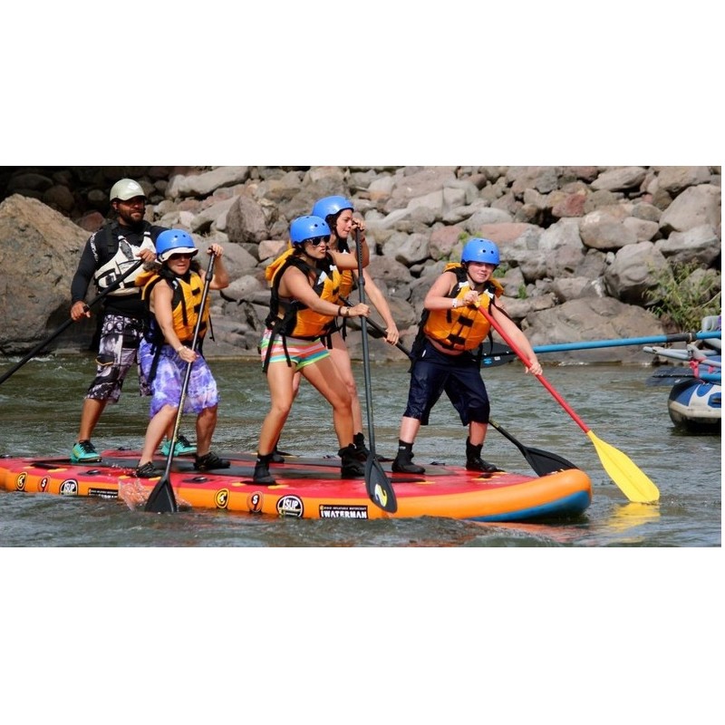 SUPSQUATCH is a giant inflatable board that can fit the whole family. Use it for a leisurely paddle on the lake or as a massive platform to soak in the Colorado rays, this is a great addition to our fleet. It can fit 5-6 paddlers. Lifejackets are required for kids under 18.