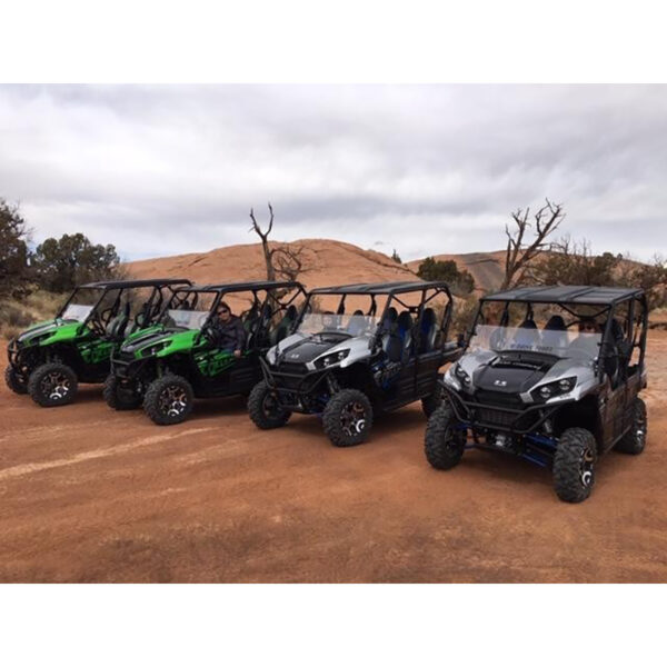 U-Drive Hell’s Revenge Morning Tour is a 2.5 hour action packed driving experience you won’t forget. You will navigate a Kawasaki Teryx 4×4 through incredible scenery over waves of slickrock on steep roller coaster type climbs and descents. This tour is guaranteed to be one of your highlights while visiting Moab. Our tours are small and personable we never have more than 3 side x sides per guide! You get personal attention and our guides take the pictures of your adventure for you, which are also included.