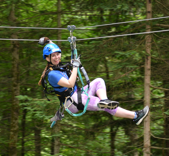 As you approach the far platform, the lead guide signals you to brake or to keep coming so you reach the tree at a controlled speed. Before you’re unclipped from the zipline, your guide clips you into the belay loop on the tree so you’re always clipped in at height. While you’re watching your friends come zipping in behind you, check out the views out over the Deerfield River Valley and the northern Berkshires, the forest around you and that feeling of adventure you’ve just rekindled!