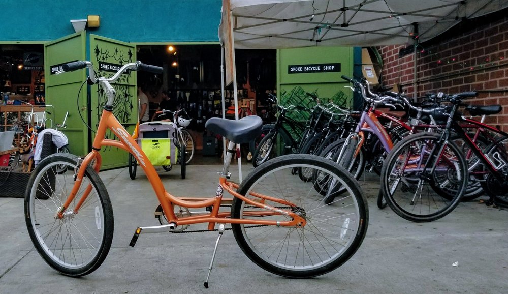 Spoke Bicycle Cafe is the first business of its kind to set up a permanent location along the LA River Bike Path to provide a comfortable, welcoming space for cyclists, pedestrians, neighborhood residents, and others. We share a 150 foot border with the LA River bike path and our one-of-a-kind, mostly outdoor spot is perfect for large groups. We provide top quality food and drinks, expert bike repairs, a large bicycle rental fleet, and a carefully curated array of accessories. We also sell records and T-shirts and host a variety of music, art, and community events.